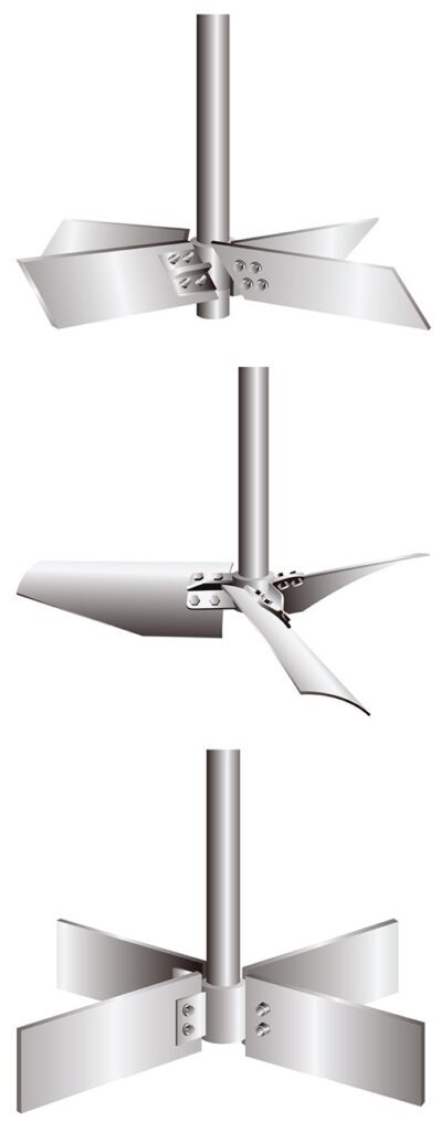 FIGURE 1. Typical turbine-blade agitators for mixing vessels can have different blade geometries, as shown in the images here