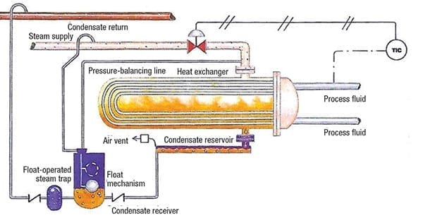 Figure 5. This diagram shows the steam-inlet control scheme with a pumping trap and float valve