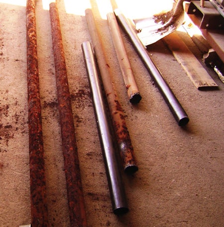 FIGURE 2. Corroded boiler tubes (brown) versus new boiler tubes (shiny) show the toll corrosion can take on asset integrity and longevity