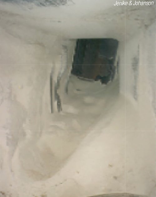 FIGURE 2. Fine material can be a problem if it builds up on the inside of bins and chutes