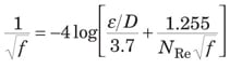 When N Re is very large, the friction factor depends only on ε /D. This condition is noted with f T as the “fully turbulent” friction factor in Equation (15).