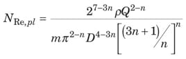 The value of N Re where transition from laminar to turbulent flow occurs ( N Re,plc) is given by Equation (25).