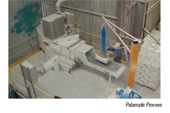 The Minislit (photo) is an automated bag-opening station capable of high rates for bag and sack emptying operations in multiple powder processing industries, including food & beverage. Common applications include quick ingredients discharge from smaller 20- and 50-lb sacks containing dairy powders, granulated sugar, spices and so on, for mixing and processing further downstream. Bag opening rates on average are around 2 to 8 bags/min depending on the package type and material. — Palamatic Process Inc., Philadelphia, Pa.