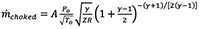 Because choked flow occurs when the Mach number equals 1, Equation (1) becomes Equation (2).