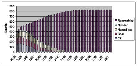 Figure 1 shows the general trends of energy production and projected use for the next three hundred years. The absolute numbers in any given mid-term year can be questioned, but the near-term numbers, say the next twenty years, are predictable, and the increasing percentage attributable to renewables in the long-term is inevitable.