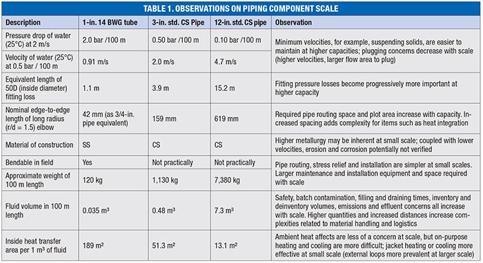 - Spatial and temporal requirements do not always scale directly, and plot requirement and quantities increase (Figure 2). Some issues become easier at scale, while others grow more complex. Table 1 contains observations on scaling, as related to piping components