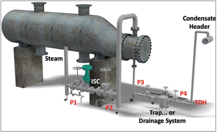 One practice, not recommended, is balancing the condensate vessel to the P1 pressure located at the entrance to the ISC (Figure 7). This balances the full P 1 pressure to the vessel. P2 represents the pressure downstream of the ISC — the pressure delivered to the reboiler, and P3 is the outlet pressure from the reboiler — after subtracting tube pressure drop from P2.