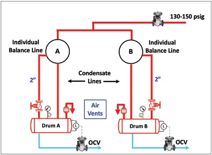 FIGURE 14. Individual condensate drum/OCV with air vents can be used in a non-stall application
