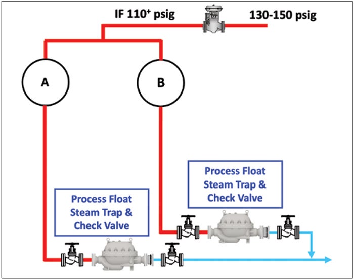 FIGURE 15. Individual steam traps with check valves are a lower cost recommendation for a non-stall application