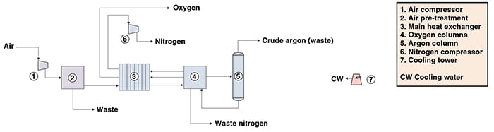 Figure 1. The diagram shows a process for oxygen production via cryogenic distillation