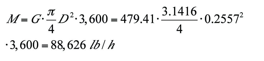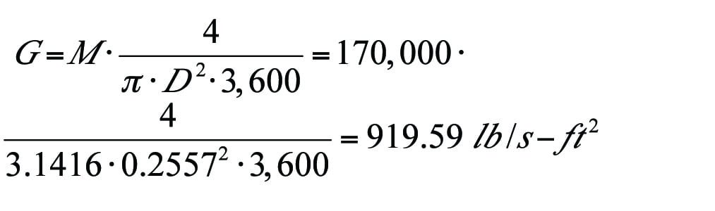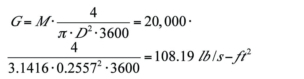 Example 2. Mass flowrate of vapor at 314.7 psia and 413°F with known upstream and downstream pressures.Calculate the mass flowrate when the pipe inlet pressure (P1) and outlet pressure (P2) are 250 psia and 100 psia, respectively. The piping system has a vertical elevation rise of 20 ft. All input data and the results are summarized in Table 1.