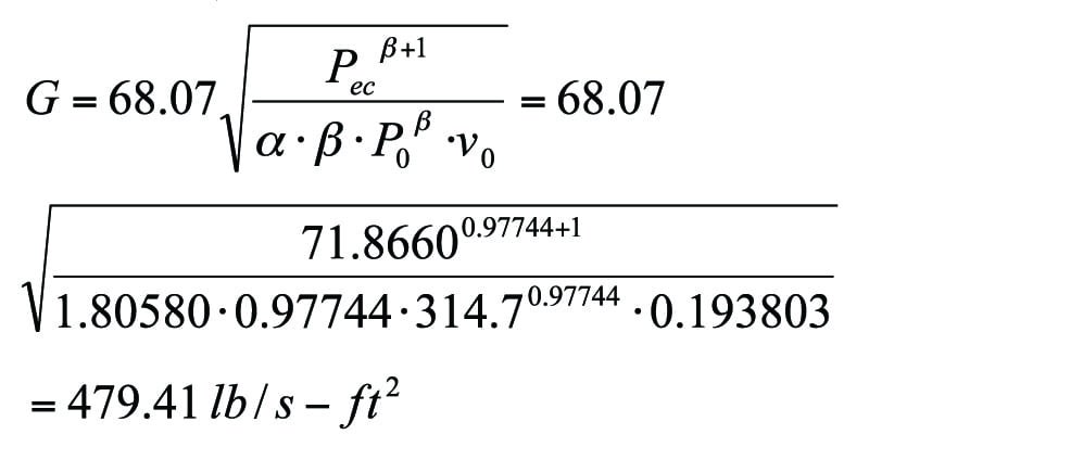 As shown in the equations above, average density and average specific volume determine the mass flux for a given piping system. Therefore, a pressure and specific-volume correlation, Equation (11), is a crucial component of the universal equation that enables design engineers to complete a pipe-sizing task with only a few flash calculations. Kim and others presented the details on how to determine the two parameters (alpha and beta) in Equation (11) [2].